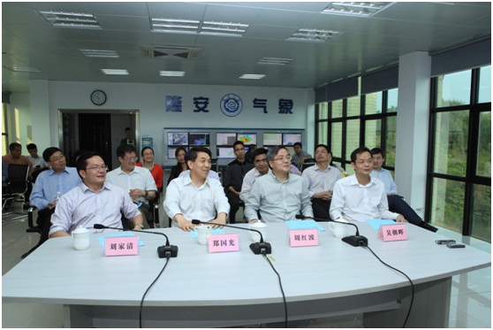 2015年3月30日下午,中国气象局局长郑国光一行在隆安县气象局对气象工作进行指导和调研。调研期间,详细了解了广西天气预报服务集约化业务系统的使用情况及隆安县基层气象业务的开展情况,同时也对与我司合作建设的隆安县气象综合服务系统的开发应用取得的良好效果给予充分肯定。并表示南宁市大力推进南宁气象现代化、信息化建设,进一步提升了气象服务保障经济社会发展的能力,成绩喜人。